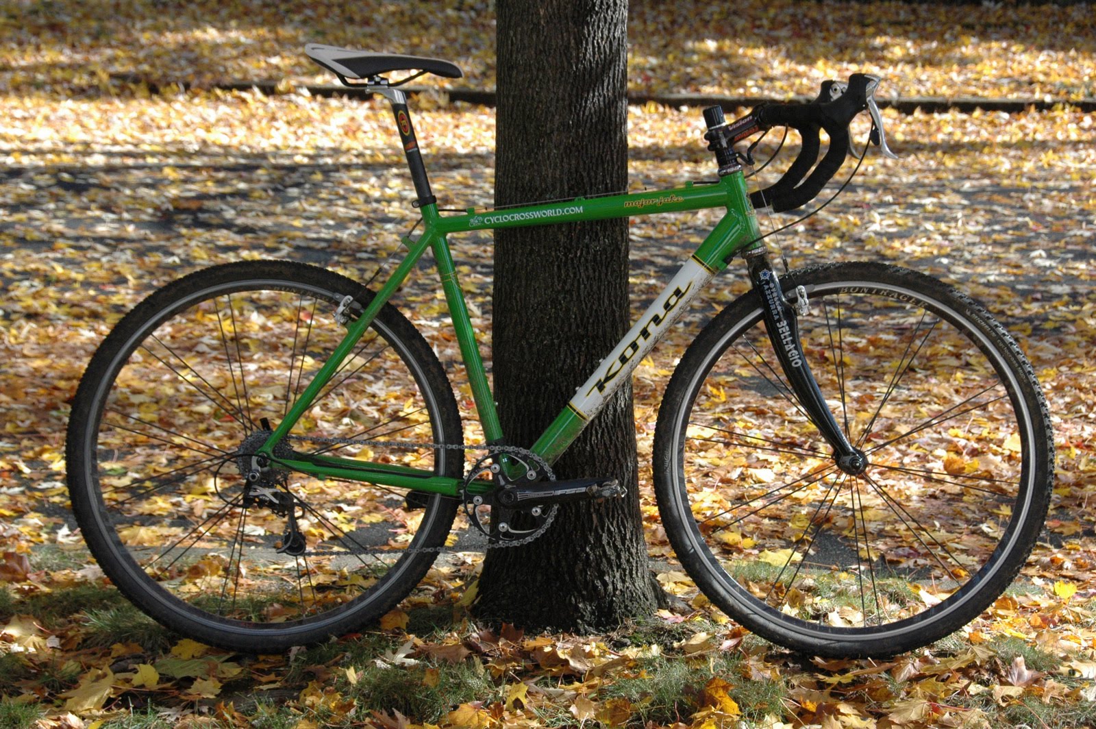 Ultegra 9 shifter is on its last leg, but the FSA isis carbon pro crank spins wonderfully, and the XTR short cage rear will not be defeated. USA-made Vuelta ring hasn’t puked up a chain yet.
