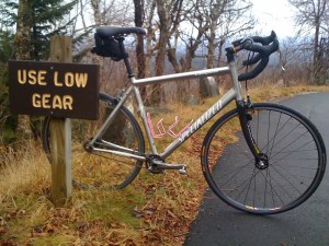 This was actually a blast. Enough so that I did it twice. I made two runs up the toll road; a conservative effort yielding 35-ish minutes and a second all-in effort for 34:08. That’s fairly slow. I gave up almost 7 minutes to my PR, which I did on my geared bike last summer. But what I gave up in time, I got back in training value. It just felt better. This setup really danced up the road. I felt pretty awesome. Even with underinflated tires – I’m without my pump at the moment. Fun little last minute surprise.
