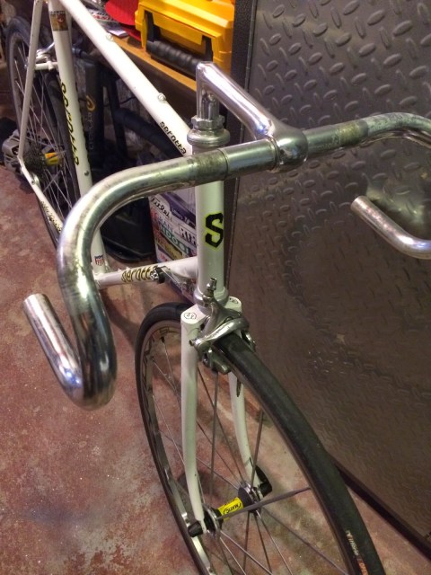 I tracked down a seatpost using one of the “search every Craigslist” websites. I ended up connecting with a guy in New Mexico who had a Dura Ace 7400 seatpost that looked to be in great shape. $15. Should be here in a few days. I’m going to not chicken out and try the Brooks saddle. It looks way too appropriate on the bike not to give it a shot. I’ll break it in on some lunch rides and hope for the best.